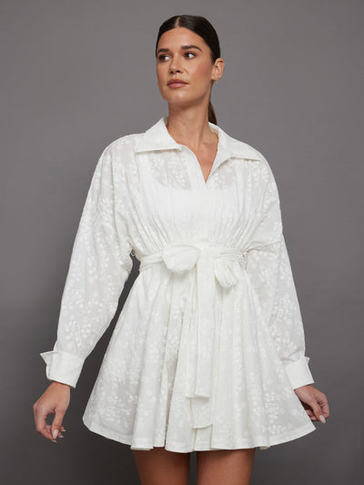 Super Oversized BK NK Shirt Babydoll Mini Dress - White Vines