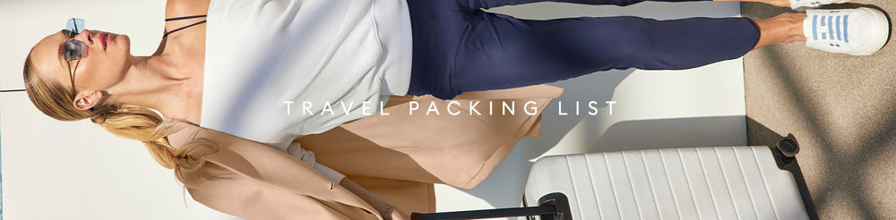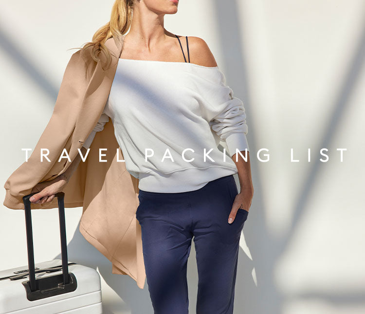 Model holding Travel Escape Bag in Pearl Silver with quilted finish and top handles. Front view of Travel Escape Bag in Pearl Silver with matching houndstooth pouch.